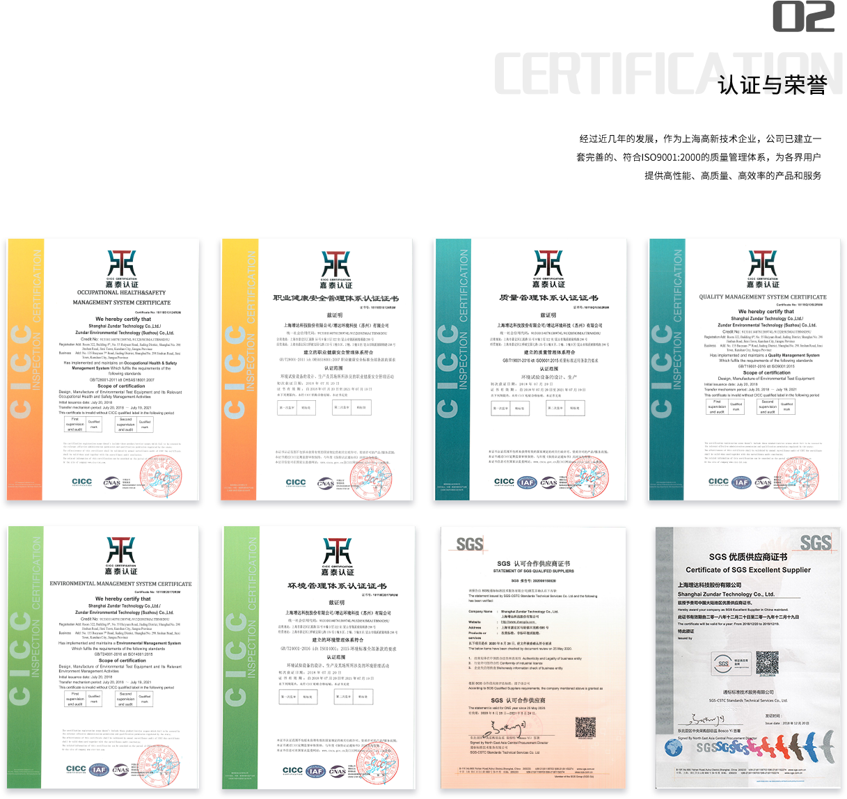 作为一家对社会、环境和安全负责的企业,我们还持续有效地运行了ISO140001环境管理体系和OHSAS18000职业与健康安全体系。